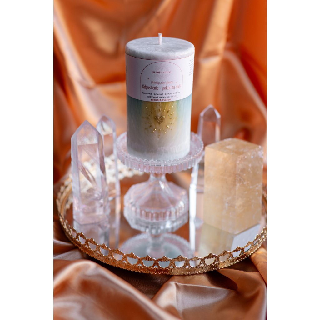 Odpustenie - pokoj na duši. Táto sviečka je vytvorená so zámerom držať priestor pri obnove vnútornej rovnováhe v tvojom vnútri cez súcit a od-pustenie. Jej jemná energia ťa bude sprevádzať ako most k precíteniu a odľahčeniu na srdci. Uvoľni čo presluhuje svoje trvanie, od-pusti a nechaj odísť cez prejavenie a prijatie vlastných emócii, nech sú akékoľvek. K sviečke môžeš vypísať svoje pocity cez list odpustenia a potom ho spáliť nad aktivačným plameňom. Mier začína v prijatí, vo výdychu, ktorý pre seba môžeš vykonať práve tu a teraz. Podpovená svetelným kódom.
