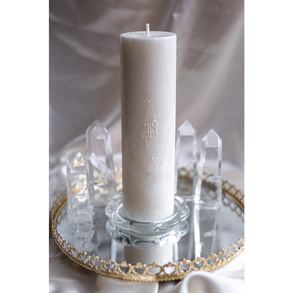 Sviečka energeticky podporí tvoj priestor a je na nej podporný svetelný symbol.